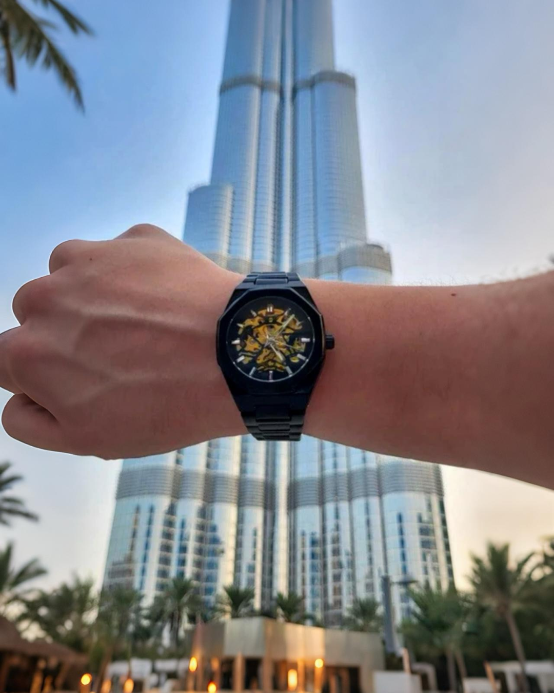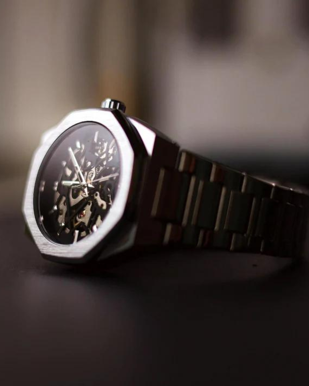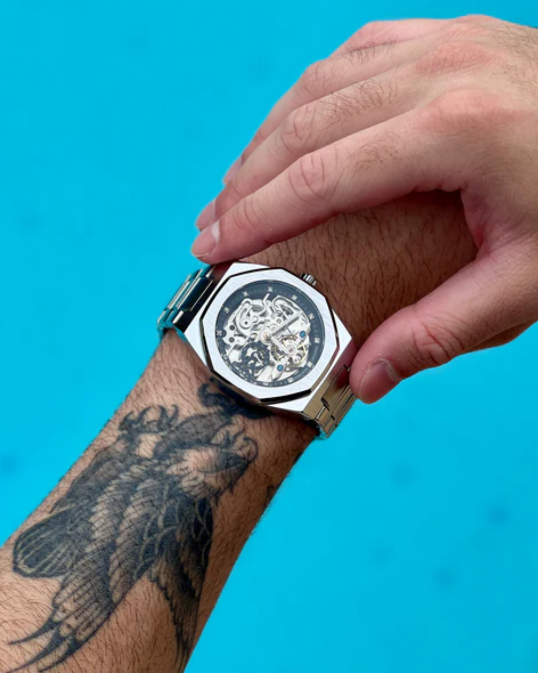 Com visual marcante e construção detalhada, o relógio chama atenção sem exageros. Uma peça que complementa o estilo de quem valoriza originalidade e bom gosto.