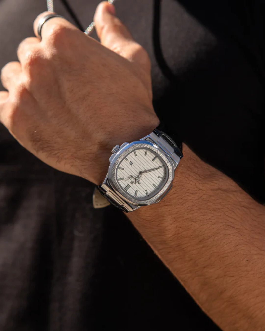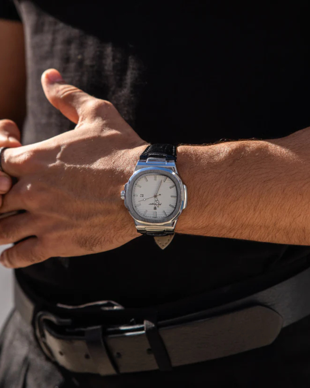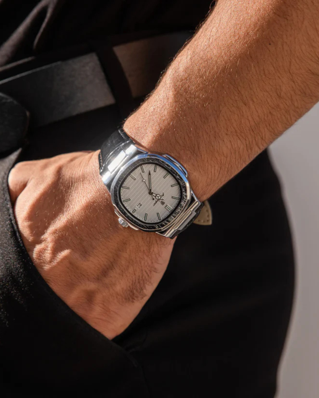 Design refinado com pulseira de couro legítimo, feito para quem valoriza o passado com estilo.