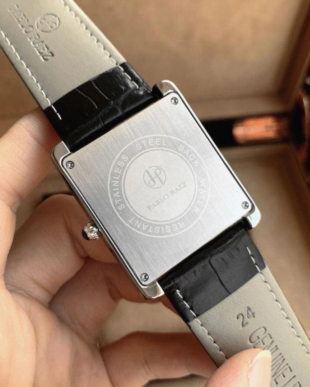 Design refinado com pulseira de couro legítimo, feito para quem valoriza o passado com estilo.